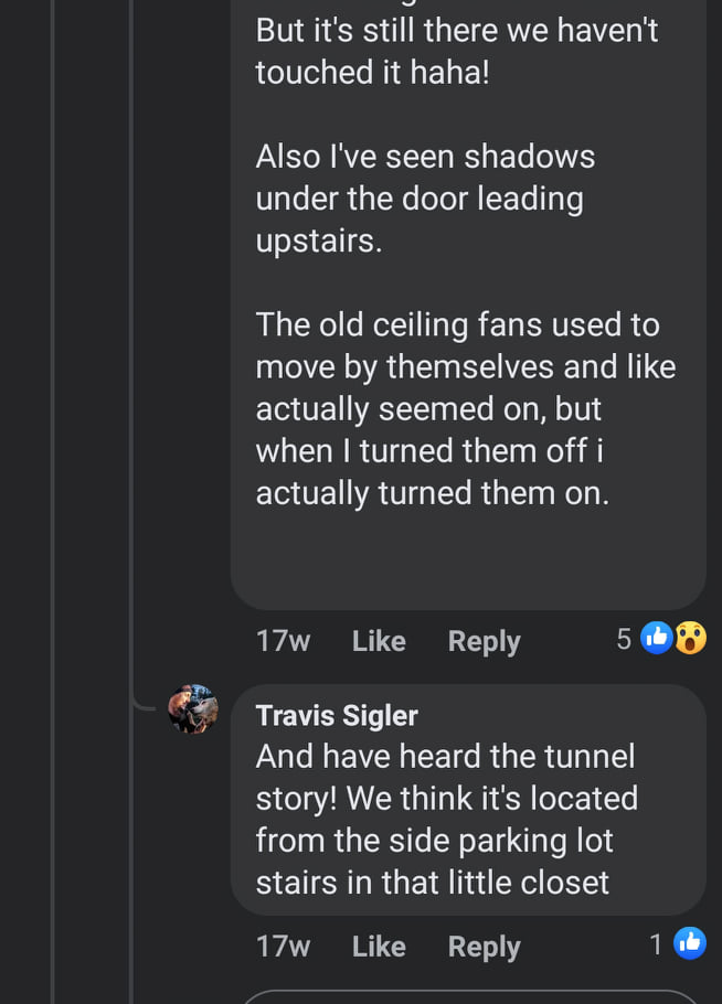 Tayler and myself (Travis here writing this) were cleaning the inside of the little cabin that is located in the hall. It’s a very small space and you can’t really fit two people inside. I was farther inside and Tayler was pretty much at the door. While inside, I was recording a little video for our patreon backers to show progress on our new location. While recording, I pointed my camera at this hole in the back wall that is basically inside concrete and goes in and up and jokingly said “Look this is where the creepy little girl lives in the walls from every horror flick”. Once I ended the video I noticed a hairbrush sitting on the edge of the hole in the wall and said “See Tayler! There is even the brush!” Once Tayler heard me he replied “There’s no hair brush” and it took me about 45 seconds of back and forth to realize he meant there “was” no hair brush. After we got back out of the cabin we looked back at the footage and sure enough when I pointed my camera at the hole there was no hair brush there.